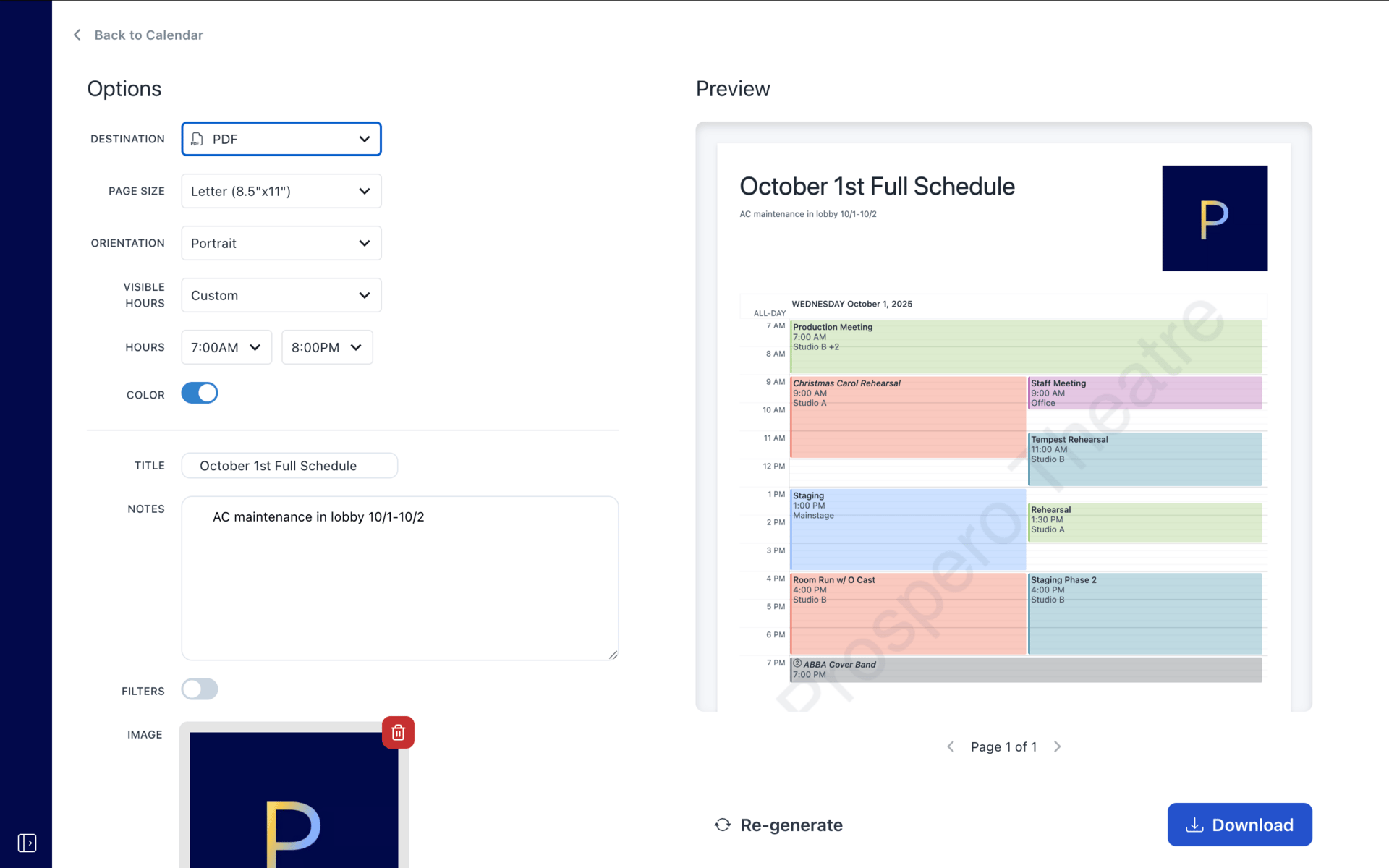 Need a quick printable schedule? You can now customize and export Day and Week calendar layouts to PDF — in addition to Month and List. generate clean, professional PDFs, and share or print schedules with ease.