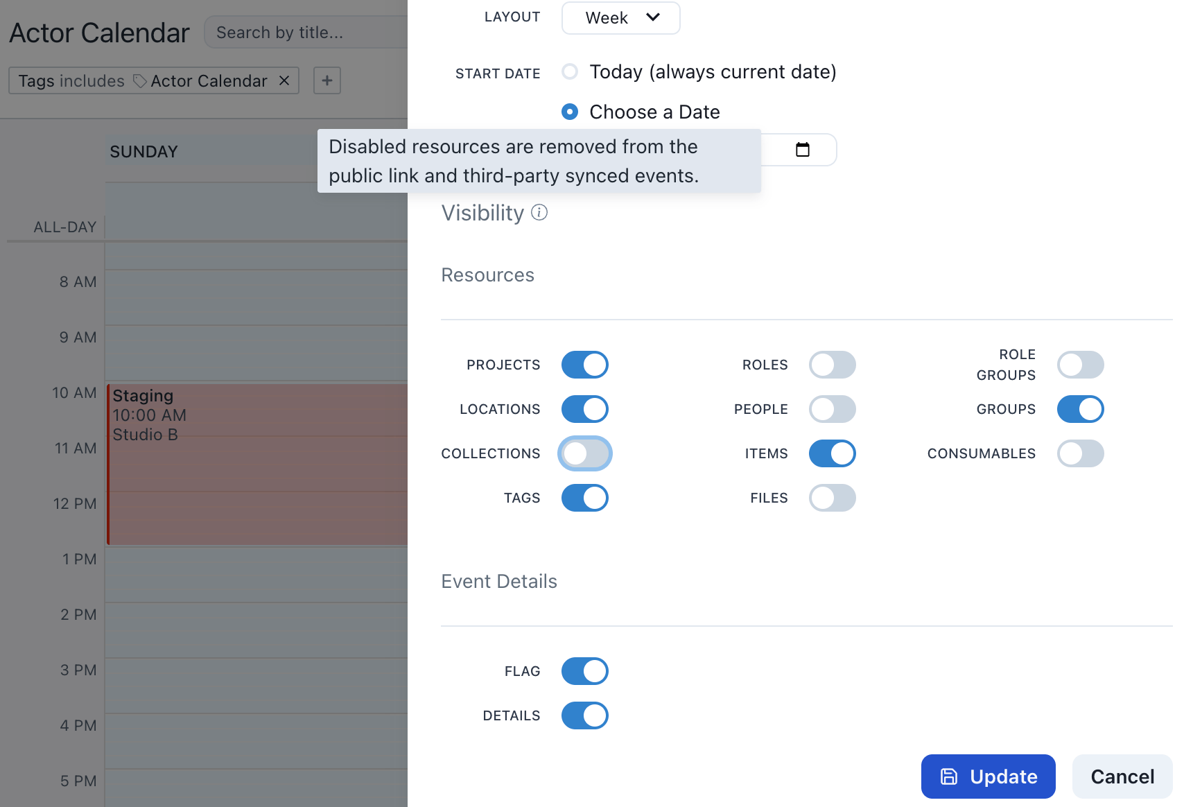 Share exactly what you want — and nothing you don’t. With new granular visibility settings, you can customize what viewers see on each schedule. Protect privacy by hiding people, make files visible for collaborators, or remove admin-only tags. Adjust visibility when creating a view, or update an existing one from the sidebar (Update View → Visibility).