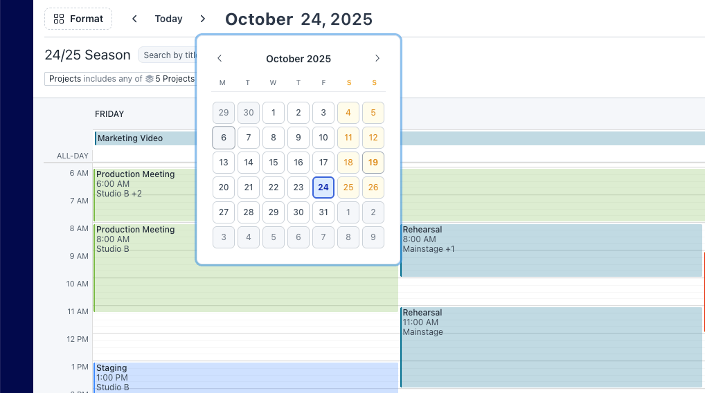 Quickly select a month, week, or day to instantly navigate across your calendar, whether you're planning far into the future or revisiting past seasons.